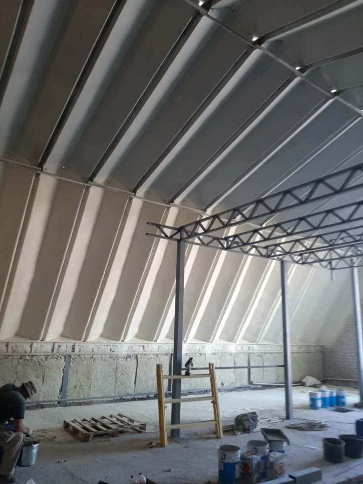 Мы предлагаем Вам наши услуги по вопросам теплоизоляции ангаров нанесением ППУ.